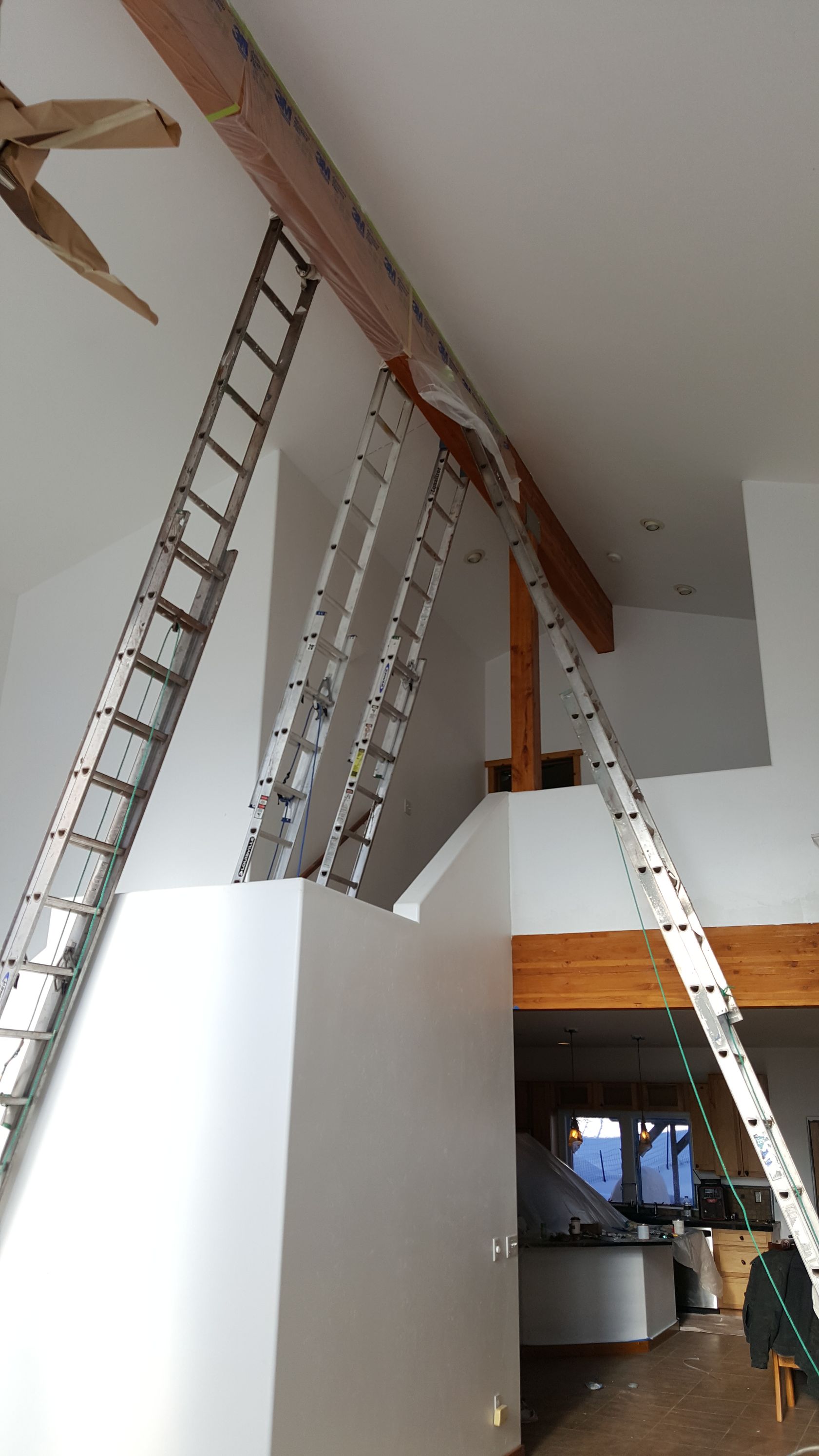 The crew begins once drywall is finished and sanded, applying primer to seal the surface and create a uniform base for the finish coats. In Durango, where new homes often include exposed beams or log details, the team tapes off wood that will remain natural and protects flooring and fixtures installed earlier in the build. You will see them fill any missed nail holes, touch up joint compound, and sand rough spots before the first coat goes on.
